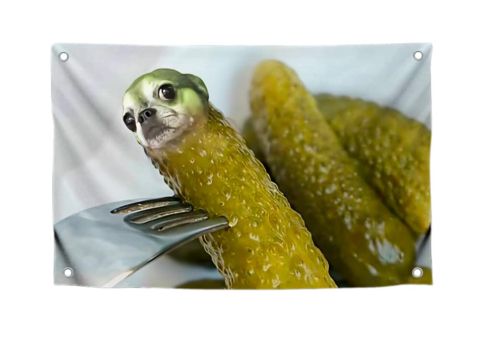 The best meme I own! I was expecting the print quality to be mid at best, but it's surprisingly crisp. I know it's supposed to be a flag, but I wish there were gromets on the opposite end to hang it as a tapestry, but that's not necessarily a negative, it's still easy to hang it regardless.
