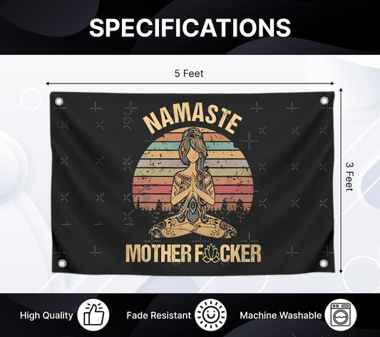 3x5 Feet Humorous Quote Polyester Flag "Namaste Mother F-cker" with Four Brass Grommets - Decoratively Painted for the Street and Residence - Meditation Banner Painted in Vibrant Colors for Room