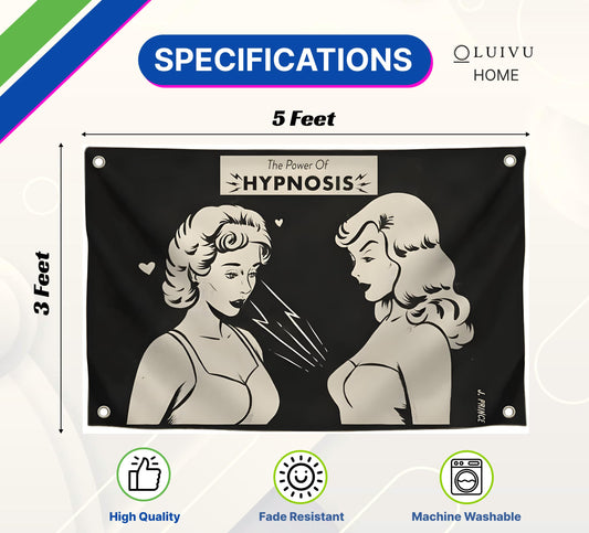 3х5 Ft Humorous Polyester Flag "The Power of Hypnosis" with Four Brass Grommets - Positive Poster for Men and Women - Parts of your Interior for Any Atmosphere and Place - Decor for Room Office Study