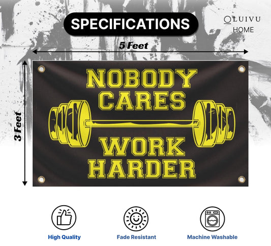 3x5 Feet Nobody Cares Work Harder Polyester Flag with 4 Grommets - Fade Resistant Single Sided Flag for Yard - Stay Motivated with Cool Art - Inspire Your Workout Banner - Fitnes Wall Decor for Gym