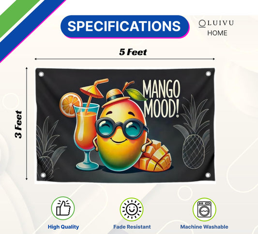 3x5 Feet Single Sided Flag with 4 Brass Grommets - Tropical Mango Mood PolyesterFlags with Cocktail - Cool Bannner for Summer Party - Funny Fruit Cocktails Design - Fun Flag for Summer Celebrations
