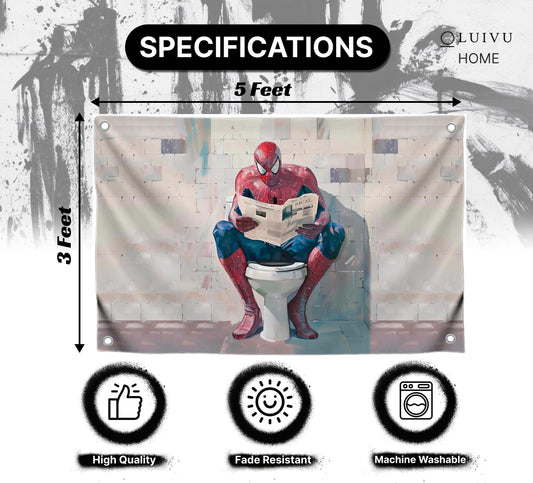 3x5 Ft Spiderman Bathroom Polyester Flag with 4 Grommets - Aesthetic Modern Vintage Painting Super Hero Art Single Sided Banner for Home and Bathroom Decor - Tapestry Cool Wall Flags for Decor College