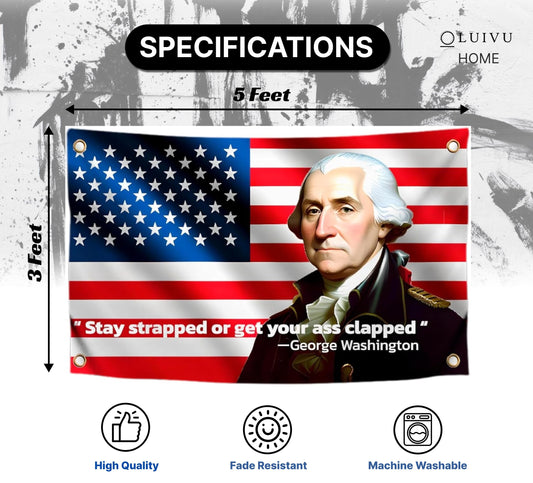 3x5 Feet Washington Stay Strapped or Get Clapped Polyester Flag with 4 Brass Grommets - Cool Funny Single Sided Flags For Room Guys Quote Meme Flags Banner - Wall Flag Pop Art Home Decoration