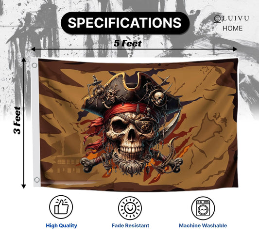 3x5 Feet Pirate Skull Flag with Two Brass Grommets - Pirat Flags Skull and Crossbones for Garden Yard Lawn Patio House - Yard Porch Patio Banner Flags for Decoration - Pirate Banner or Black Boat Poster
