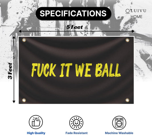 3x5 Ft F*ck It We Ball Polyester Flag with 4 Grommets - Black Funny College Dorm Single Sided Flags for Girls - Cool Bedroom Room Wall Meme Indoor or Outdoor Garden or Home Decor Party and Guys Cave