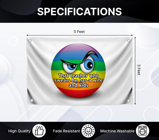 3x5 Ft Multicolor Emodji "That Teacher Who Swears He Has A Wife and Kids" Single Sided Flags with 4 Brass Grommets - Emojis Smile Polyester Banner for Wall Decoration - Home Wall Decorations on Banner