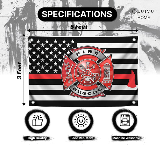 3x5 Feet Firefighter Polyester Flag with 4 Brass Grommets - Fire Department Thin Red Line American Single Sided Flag - Cross Firefighters Flags - Fire Rescue Banners for Outdoor or Indoor