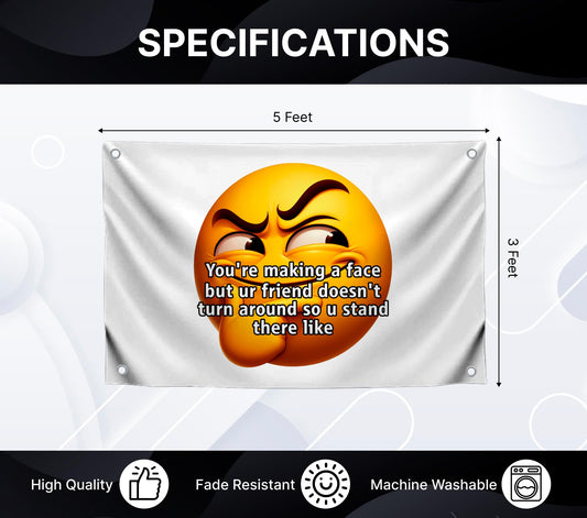 3x5 Feet Meme Polyester Flag "Youre Making a Face But Ur Friend Doesnt Turn Around So U Stand There Like" with 4 Grommets - Emojis Smile Single Sided Banner for Wall - Cool Flags for Decor Boys Room