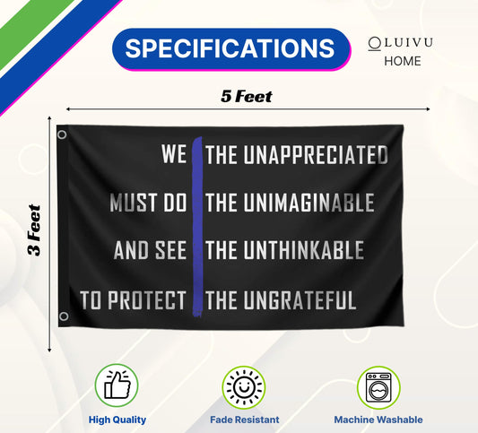 3x5 Ft Thin Blue Line on Motivation Single Sided Polyester Flag "We The Unappreciated Must Do The Unimaginable And See The Unthinkable To Protect The Ungrateful" with 2 Grommets for Wall Home Decor
