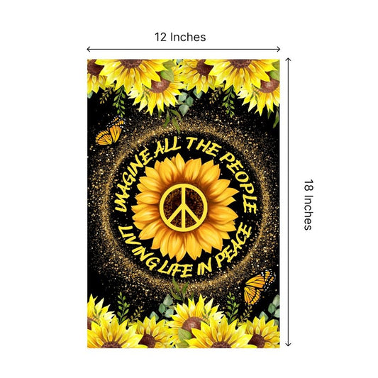 12x18 Inches Imagine All The People Living Life in Peace Flag - Double Sided Hippie Sunflower Vertical Banner - Home Decoration Outdoor Garden Patio Yard Lawn Flag - Peace Flags For Outdoor/Indoor