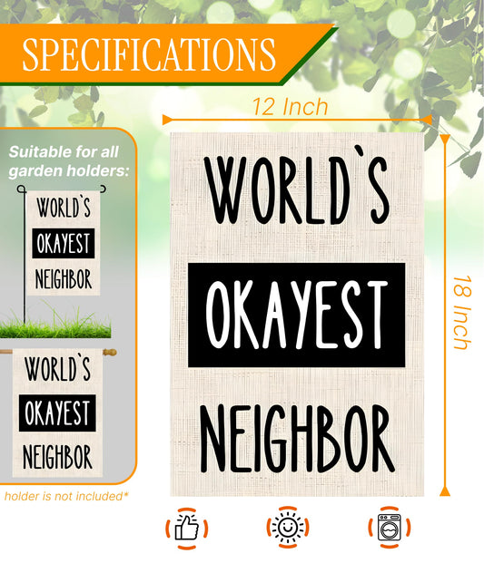 12x18 Inches Worlds Okayest Neighbor Polyester Flag - Funny Garden Flag Vertical Double Sided Outdoor Indoor Decoration - Holiday Burlap Yard Banners - Outdoor or Indoor Farmhouse Decorative
