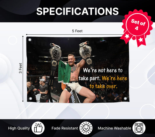 Set 4X Motiv Sports and Quote Polyester Flags 3x5 Ft with 4 and 2 Grommets - Muhammad Motivational Workout Single Sided Banner - Inspire Your Workout with this Banner - Boxing Inspirational Gym Flags