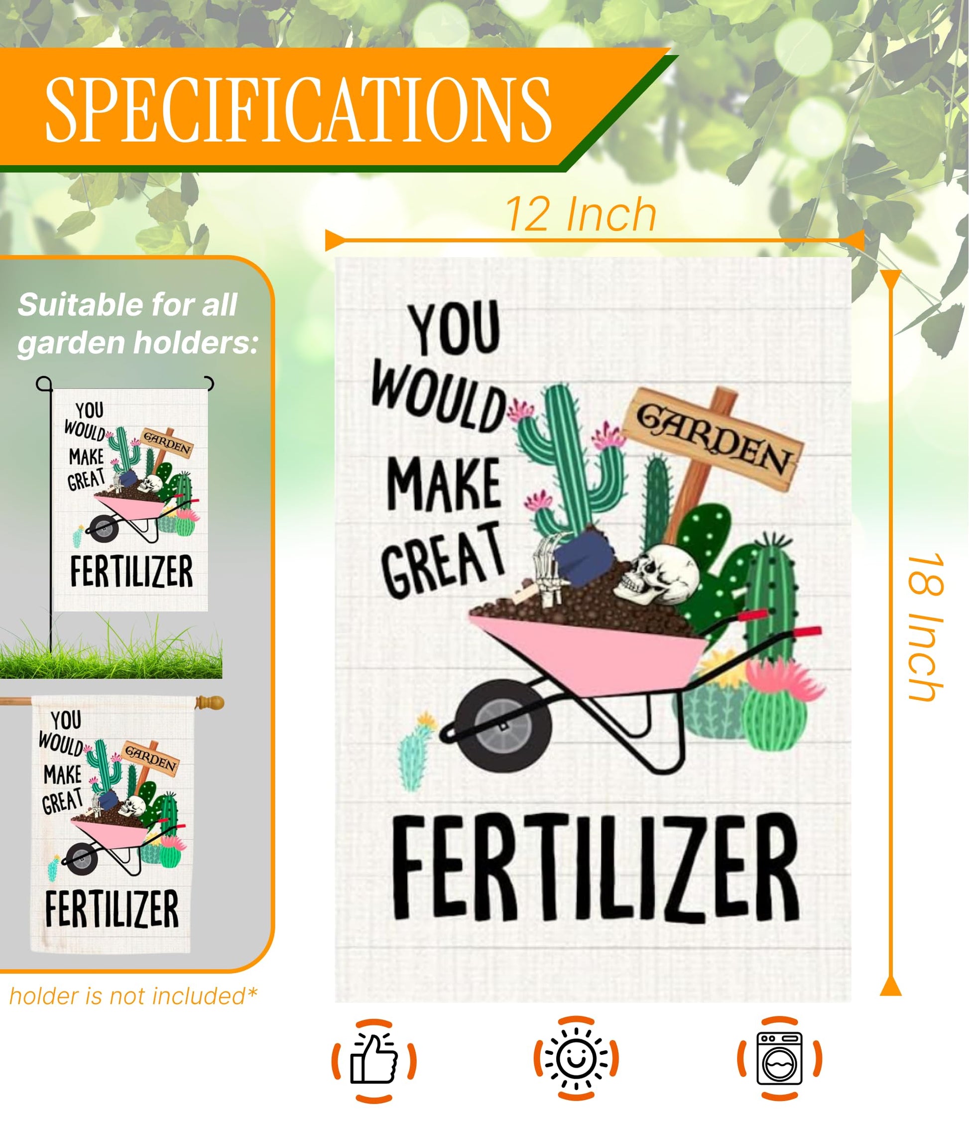 12x18 Iches You Would Make Great Fertilizer Polyester Flag - Double Sided Holiday Outdoor Farmhouse Lawn Decor Skeletons Flags - Dinosaur Skeleton Yard Flag - Fall Outdoor or Indoor Decoration