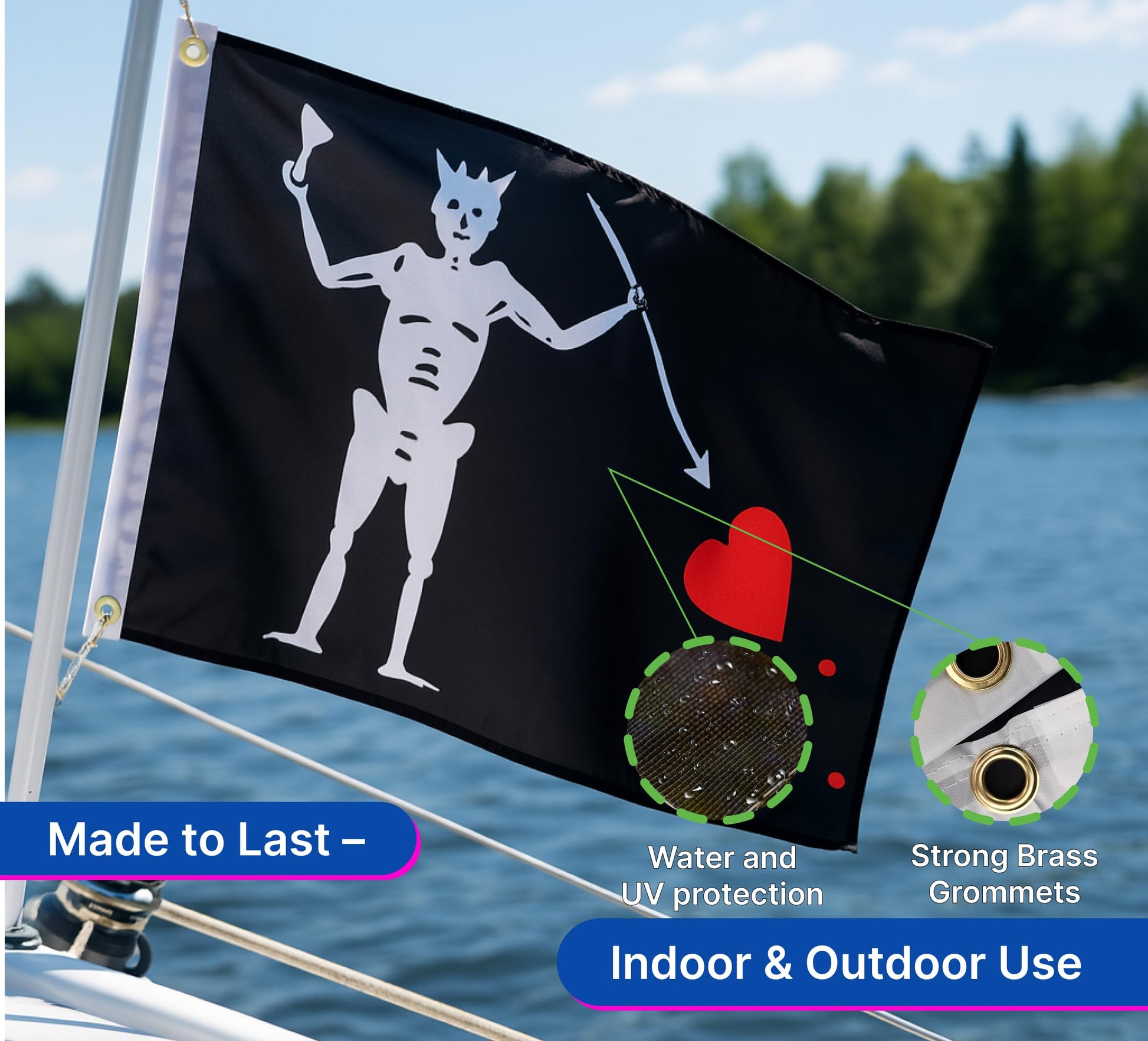 - Perfect for decor front porch, yard, veranda, garden, patio, home, mailbox stand, poolside, lakeside. Flag stand or pole are not included. All season flags 12x18 double sided, blackbeard welcome décor