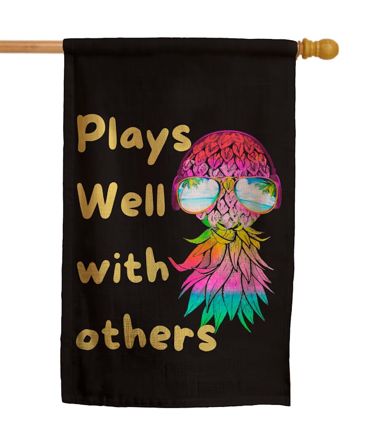 - 3x5 flag outdoor pineapple plays well with others and cool 2024 banner for room man or meme flags funny dorm decor. Double sided decoration america flag for bar.