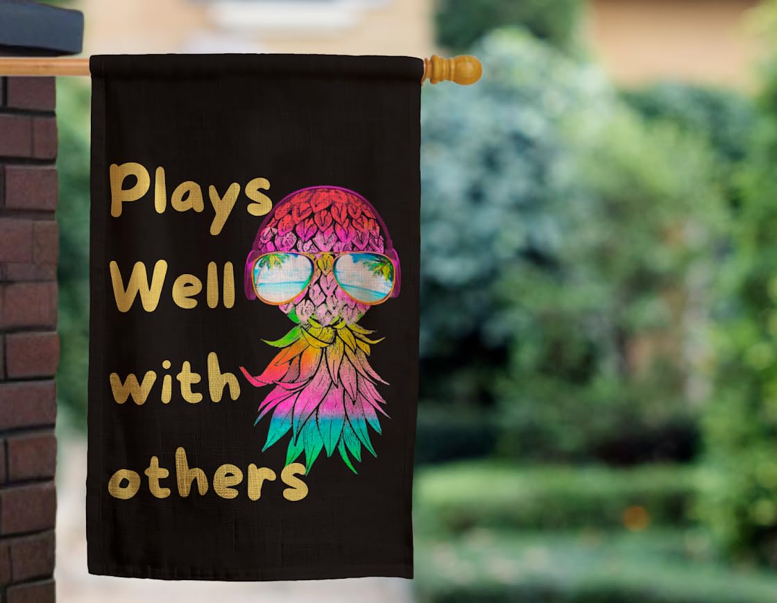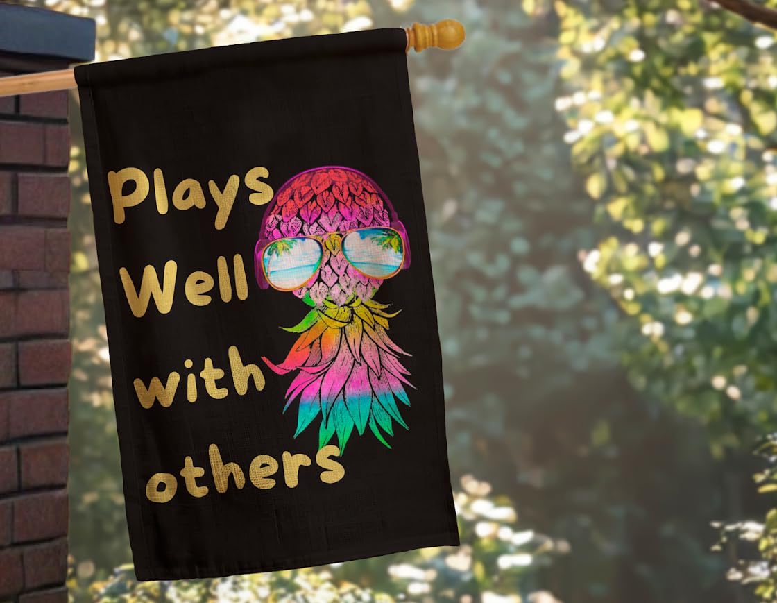 12x18 Inches Plays Well with Others Polyester Flag - Upside Down Pineapple Garden Flag - Double Sided Seasonal Porch Decorations Banner - Funny House for Garden Yard Party Indoor and Outdoor Flags
