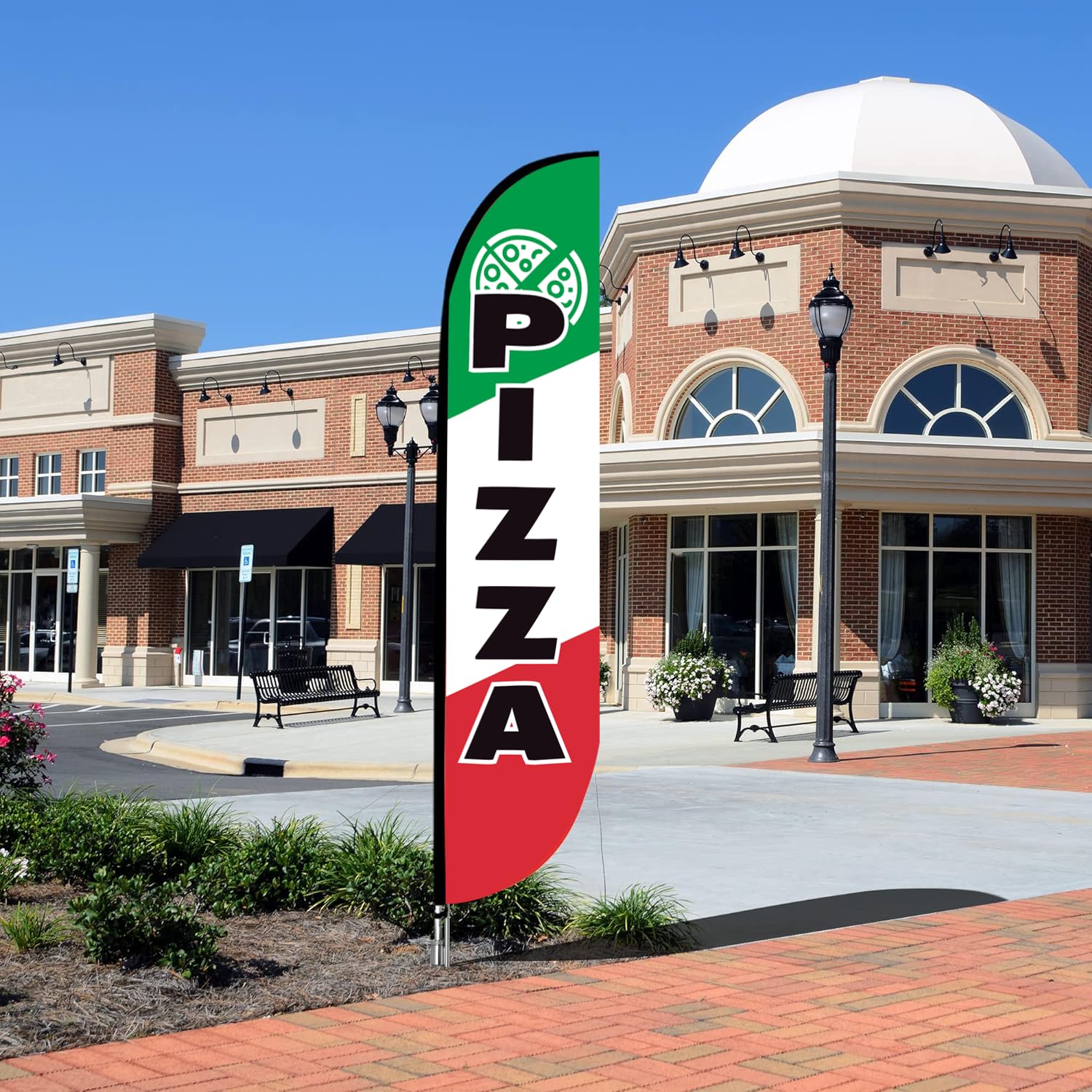 12x2.5 Feet Tall Feather Flags "Pizza" - Single Sided Food Themed Feather Banners - Tall Italy Advertising Flag for Outdoor Garden - Pizza Flags with Polyester - Flagpole is Not Included