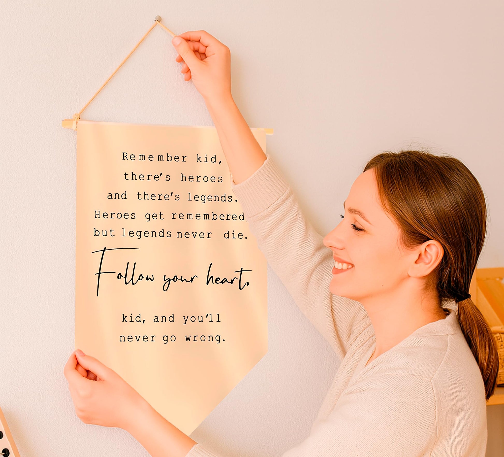 - This hanging pennant for room athlete. Cool dorm room hanging flags or banners made for wall bedroom, wall flag indoor. Flags to hang in your room. Includes wooden dowel and pre-tied string.
