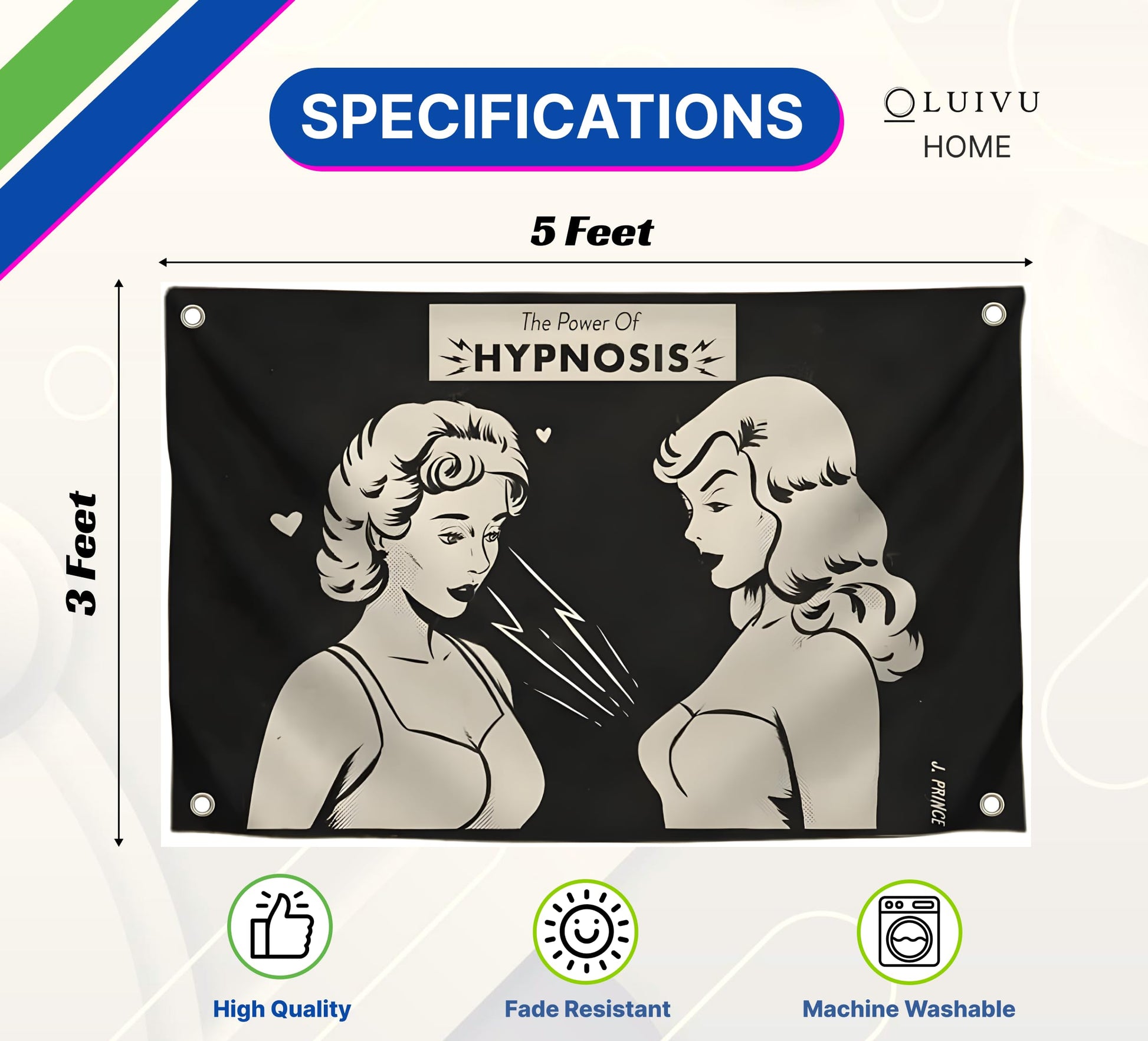 - Imported 100% polyester flag. Harnessing "The Power of Hypnosis" this flags brings a mesmerizing touch to your decor. Ideal for bedrooms and living rooms, it effortlessly combines style and humor.