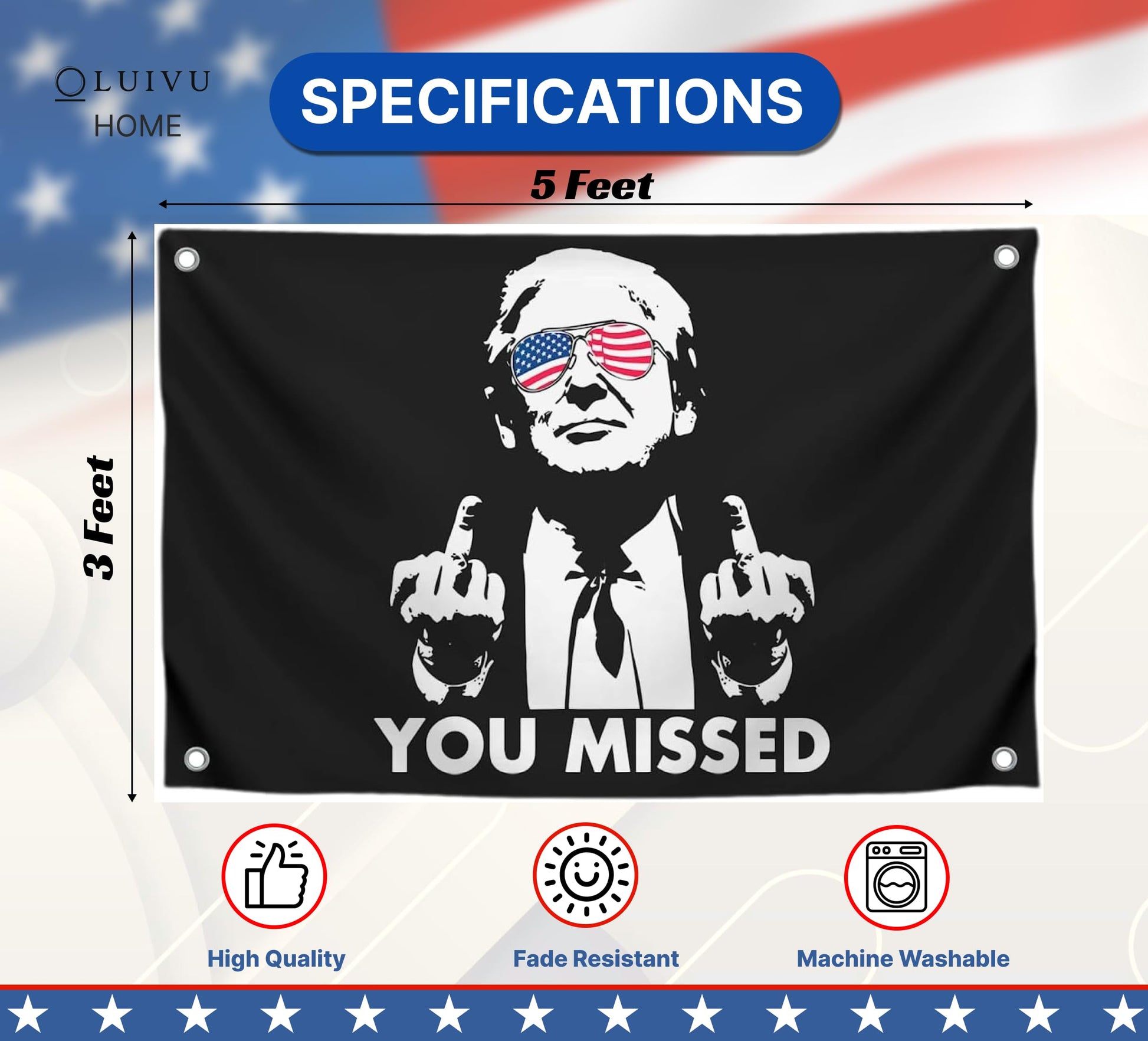 3x5 Feet American Polyester Flag "You Missed" with Four Brass Grommets - Republican Political Rebel Flags Outdoor or Man Cave Banner - Tapestry Donald Wall Decoration for Room - US Americans Banner