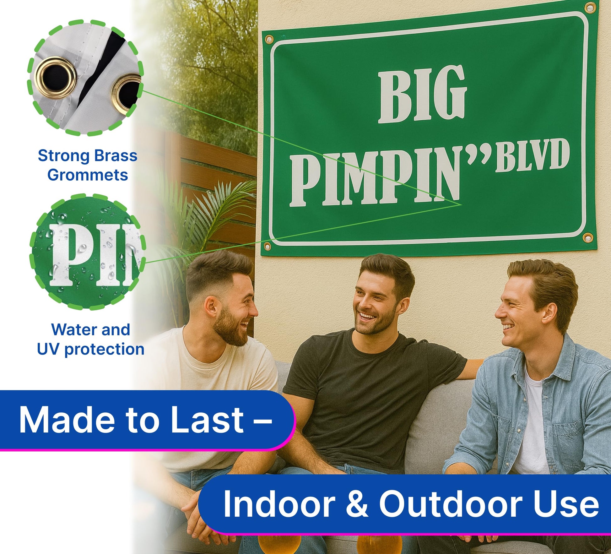 3x5 Feet Big Pimpin'Blvd Funny Quote Single Sided Flag with Four Brass Grommets - Funny Flags Tapestries Polyester Banner for College Dorm Room Wall Decor - Meme Banners Room Decorations