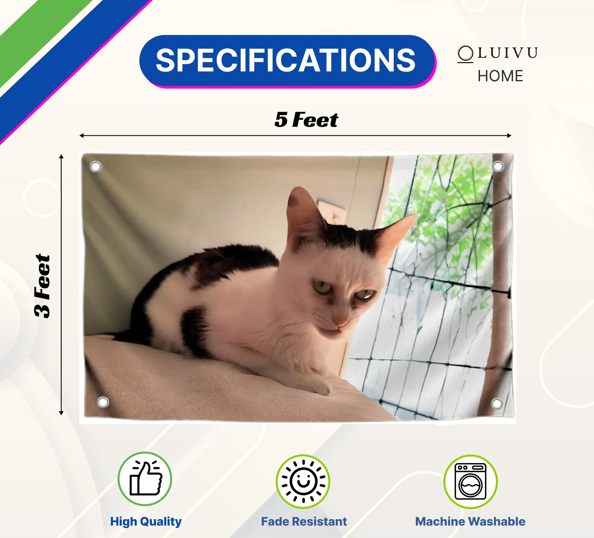 3x5 Feet Cat with a Human Face Tapestry Single Sided Flag with 4 Grommets - Polyester Funny Cats Outdoor or Indoor Flag - Tapestry Cats with Sad Face Meme Wall Decor - Animals Tapestry For Classroom