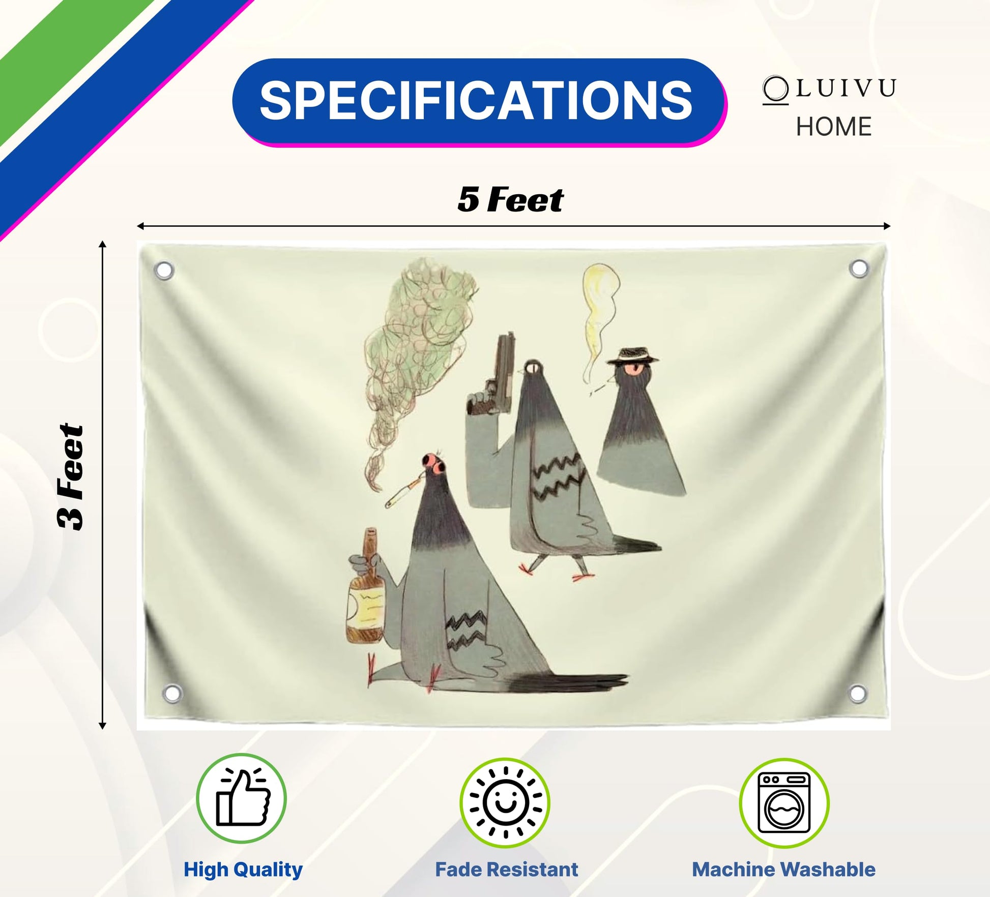 - Cool tapestries for home or funny flags for bedroom men, funny room decor, this flag smeared doves for boy room decor and teen. Meme banners for wall decor bedroom guys with indoor and outdoor.
