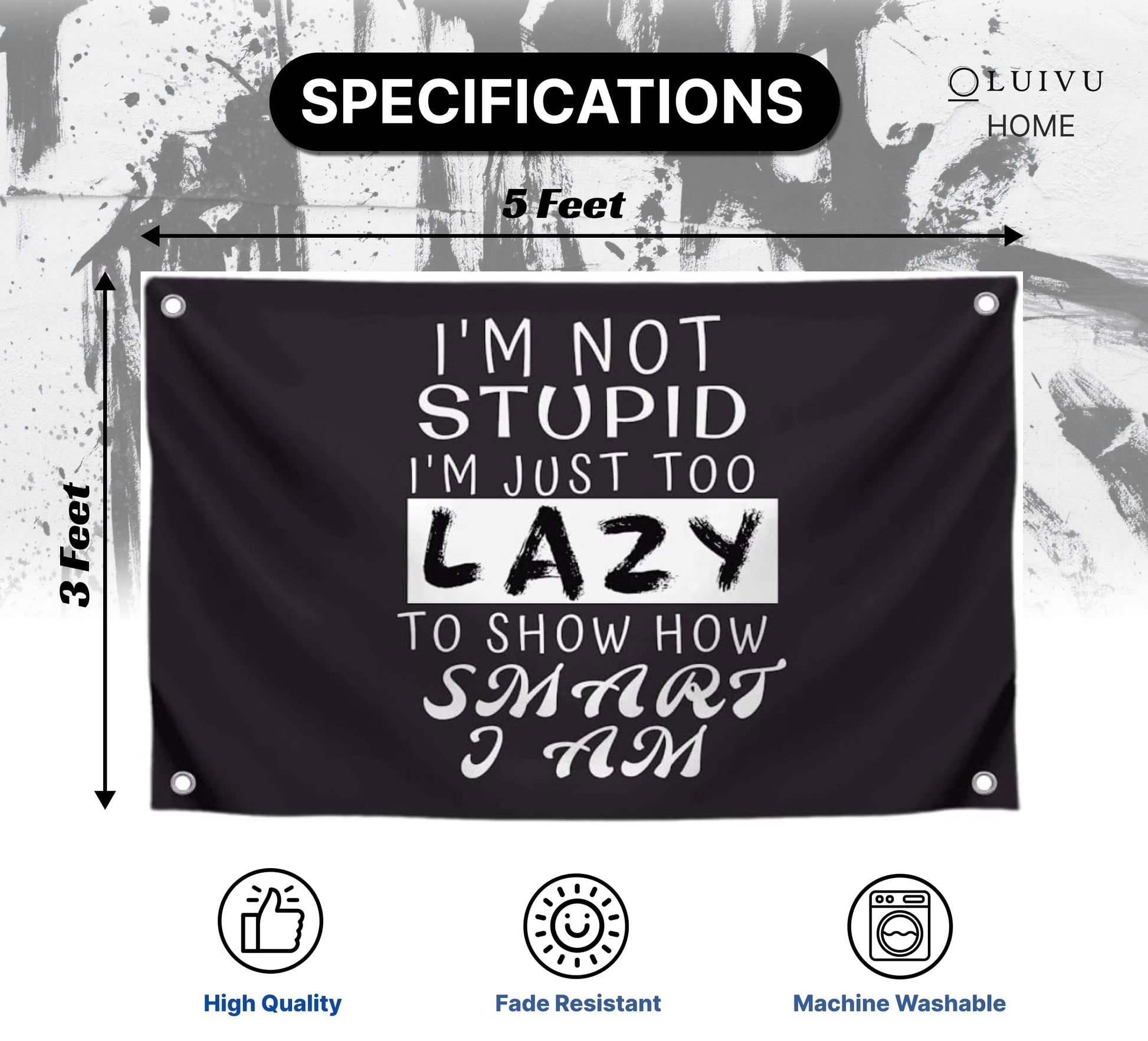 - Quirky and relatable, the "I'm Not Stupid, I'm Just Too Lazy to Show How Smart I Am" flag adds humor and personality to your space. Perfect for dorm rooms, offices, or anywhere you want a fun vibe.