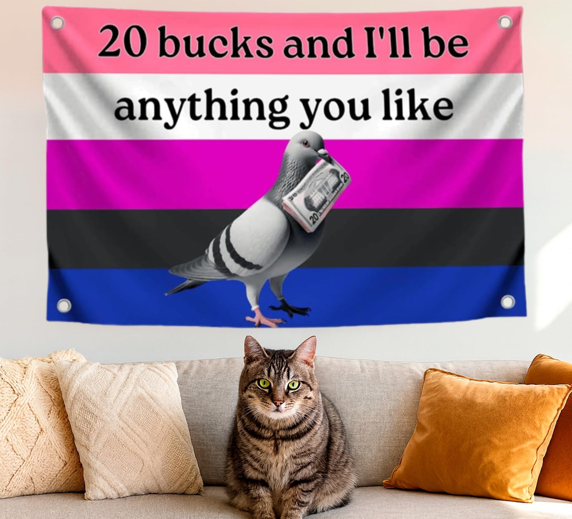 3x5 Feet Genderfluid Pigeon Pride Polyester Flag with Four Brass Grommets - Quote Multicolor Flag "20 Bucks and I'll Be Anything You Like" with Four Brass Grommets - American Money Banner for Home