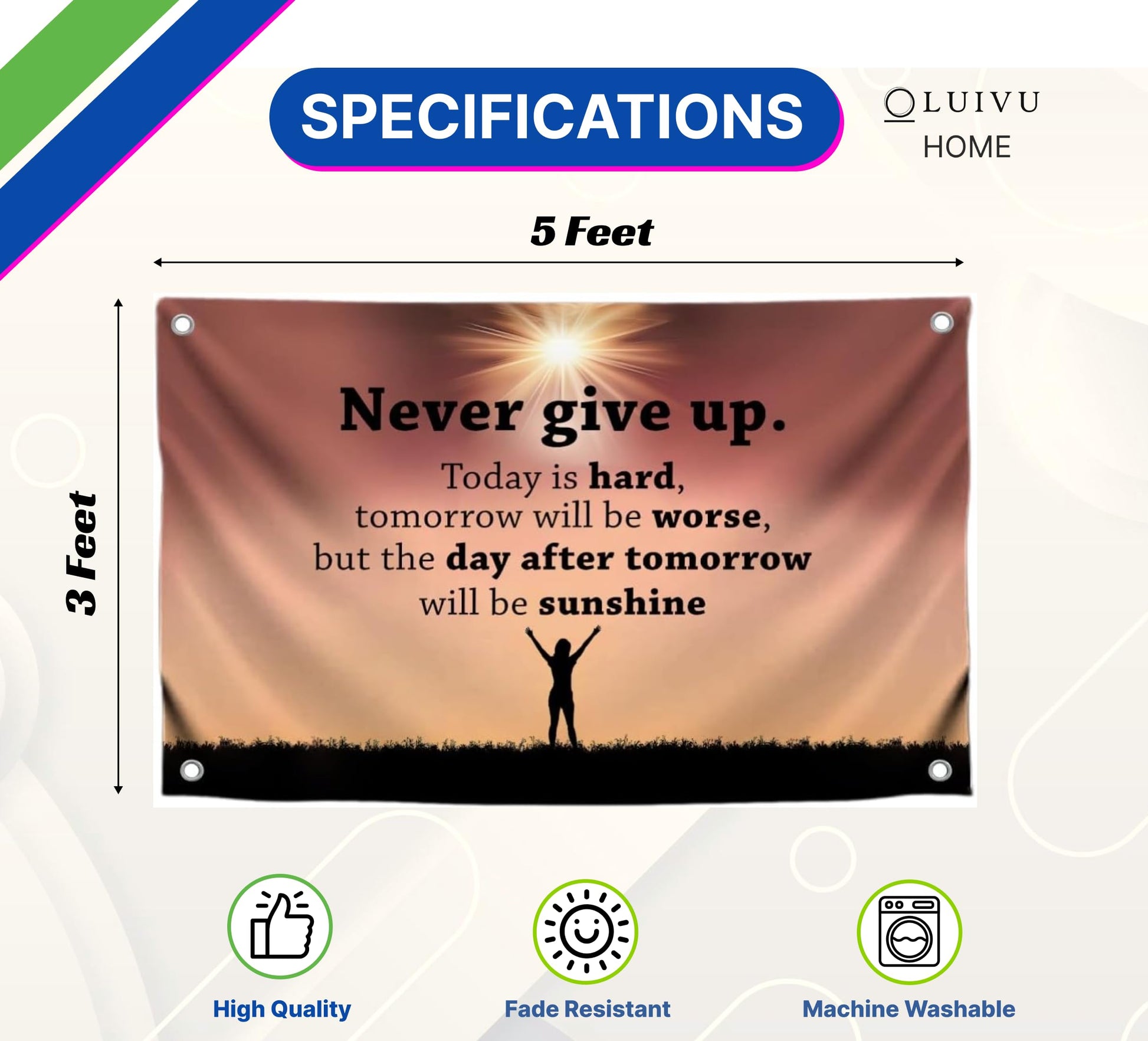 3x5 Feet Inspirational Quoted Polyester Flag Never Give Up with Four Brass Grommets - Inspirational Cool Poster for Room - Single Sided Quote Wall Flag Decoration - Motivational Positive Quotes