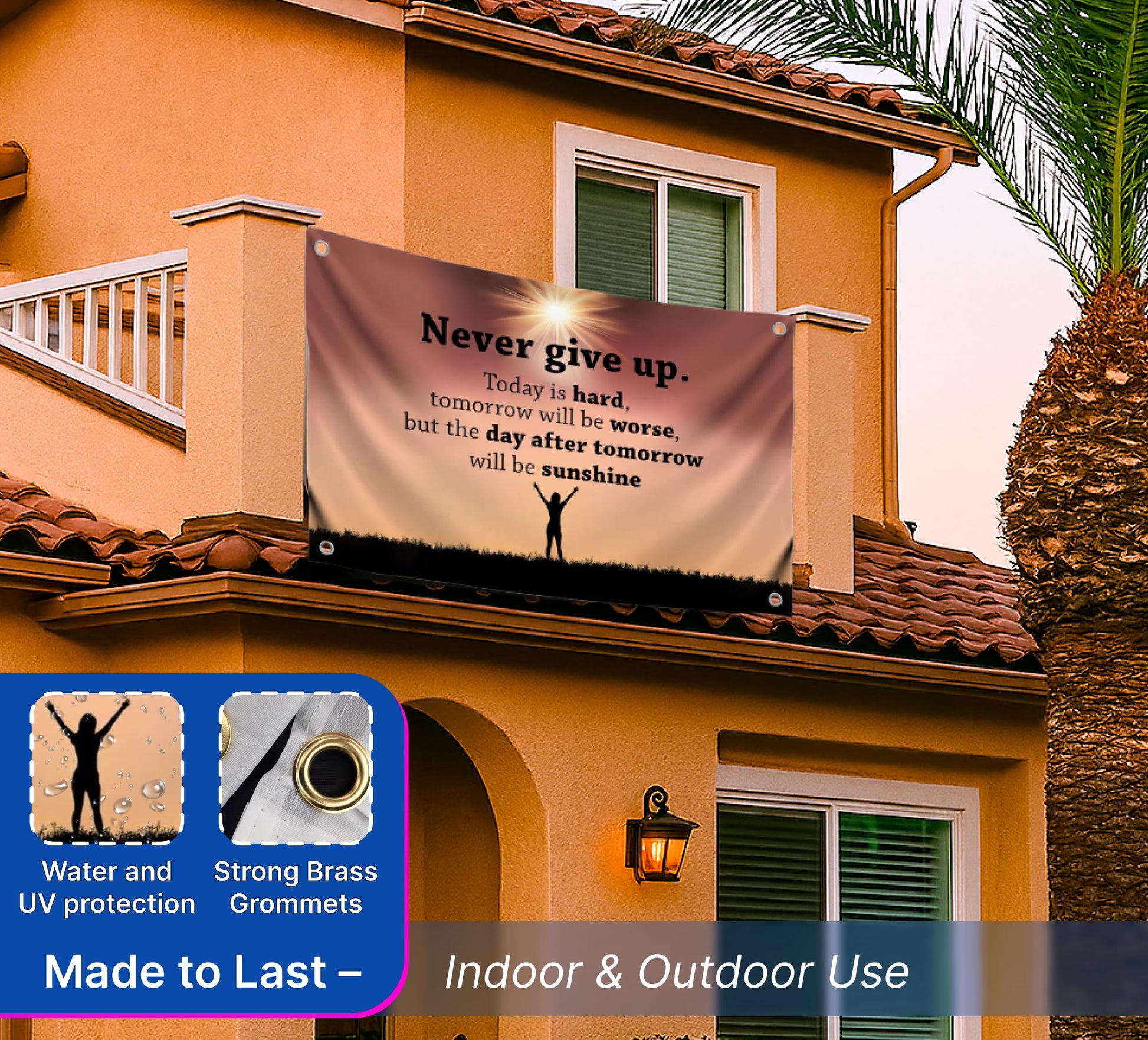 - Inspire resilience, the "Never Give Up" flag serves as a powerful reminder to keep pushing forward no matter the challenges. Perfect for your home or gym to ignite perseverance and determination.