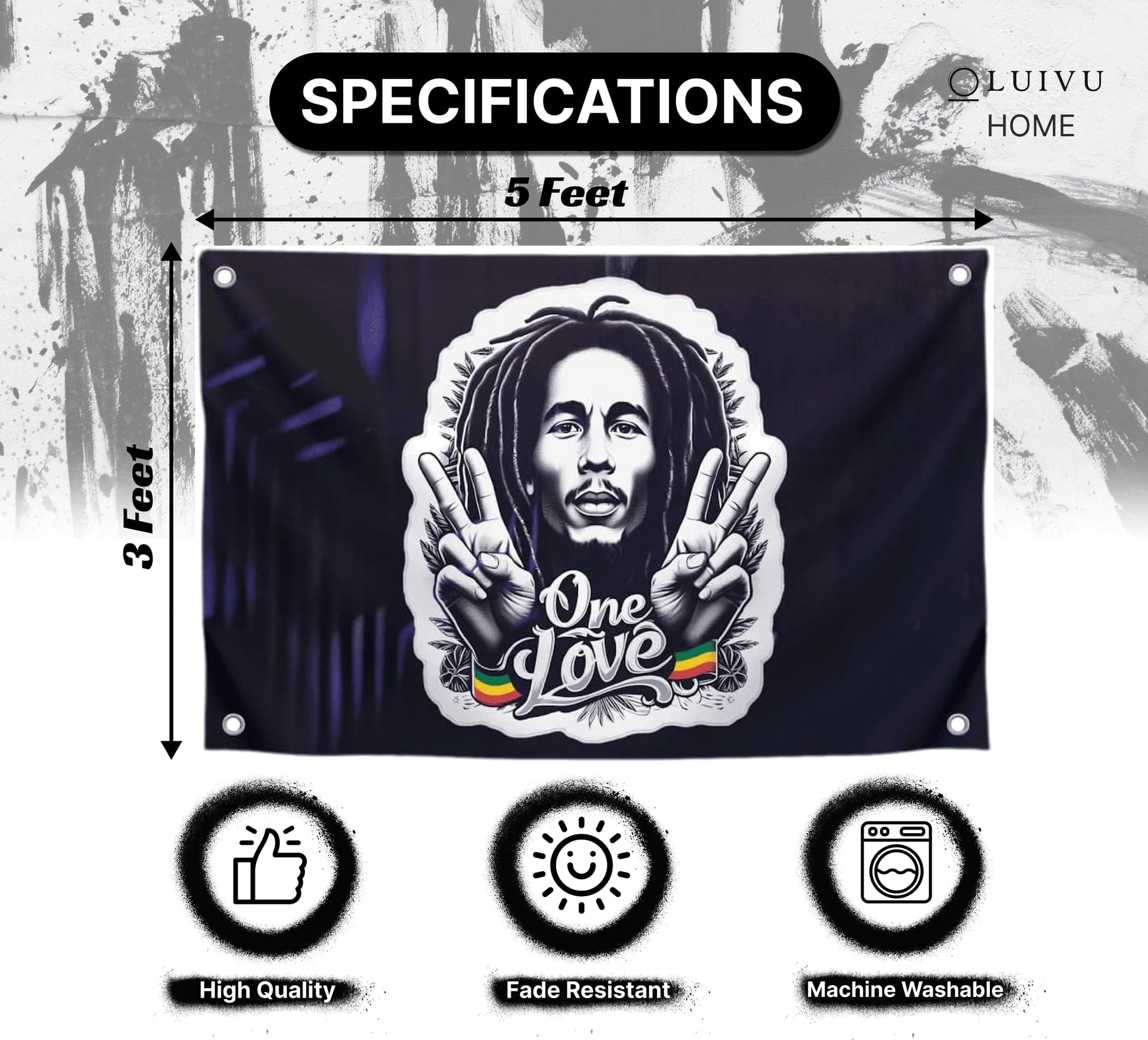 - Suitable for many occasions: the hippie with one love marley flag is the best decoration for porches, gardens, pastures or offices, indoor or outdoor, insid or outsid for lawns.