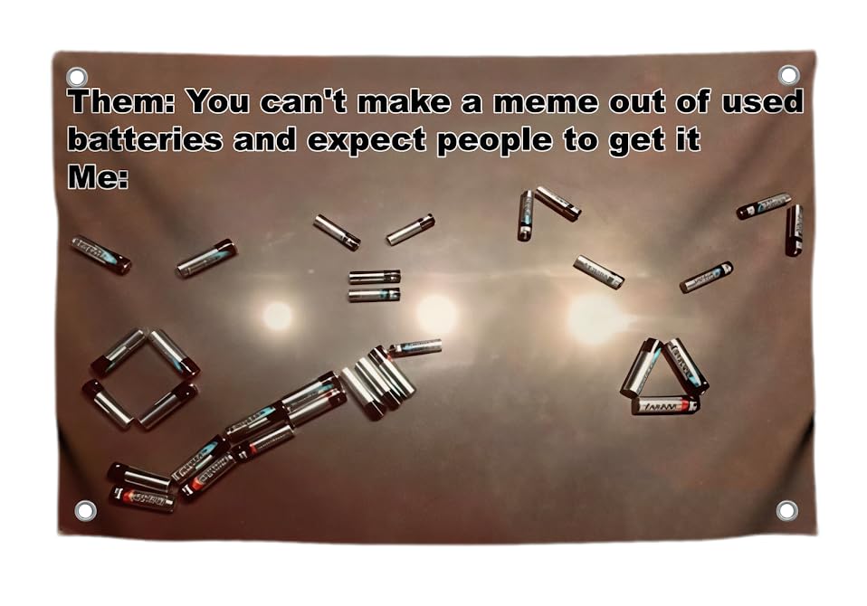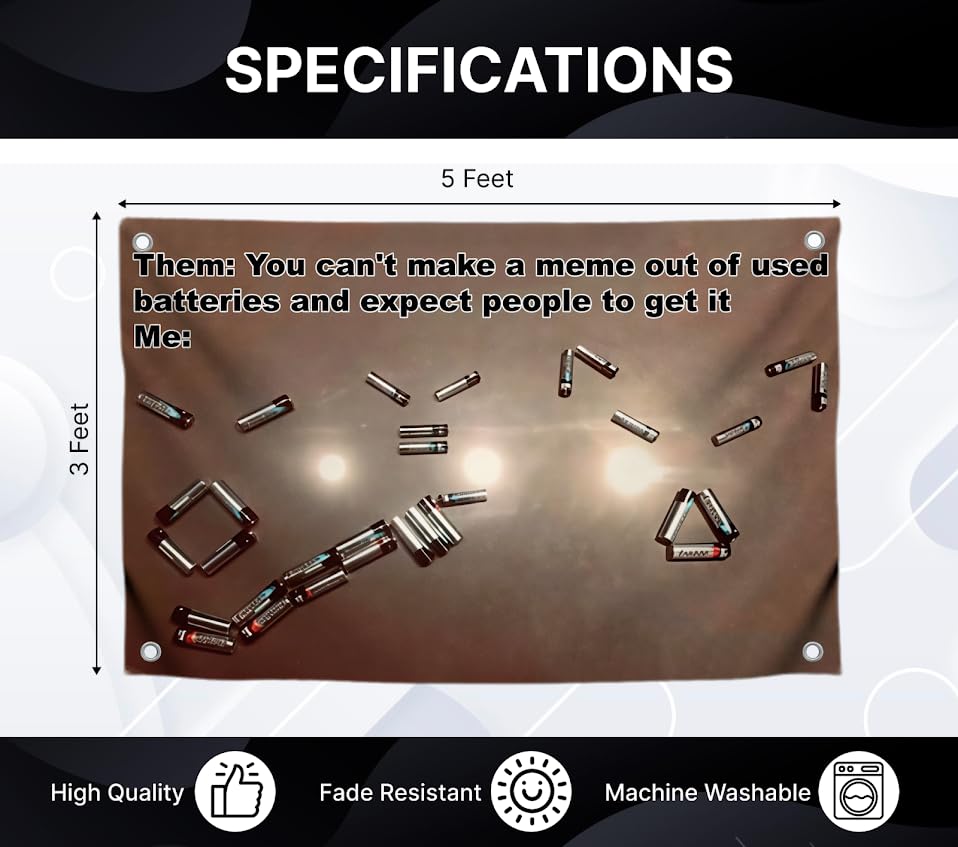 3x5 Feet Meme Batteries Flag with 4 Brass Grommets - Single Sided Polyester Funny Flags for Bedroom in the College Dorm Students - Cool Tapestry Motivational Banner for Room Living Decoration