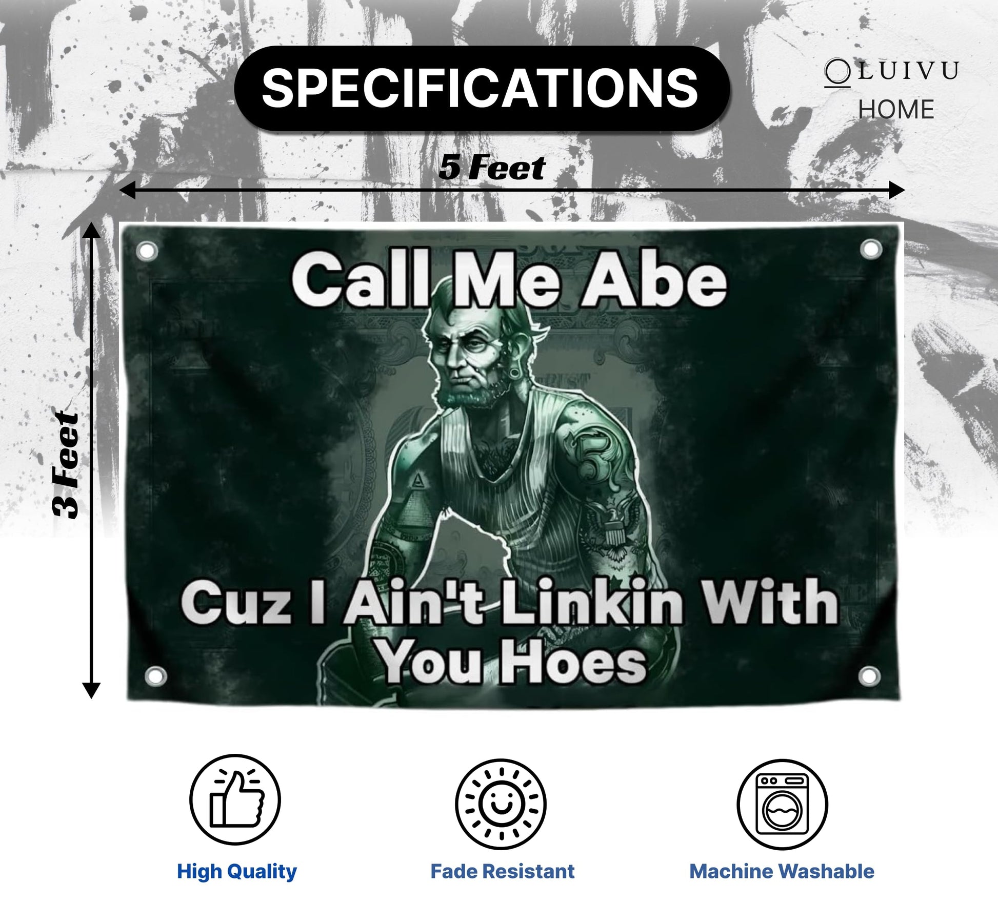3x5 Feet Meme Linkoln Polyester Flag Quoted Call Me Abe Cuz I Ain't Linkin with You with Four Brass Grommets - Tapestry Funny President Flag for College - Funny Quote Flags for Wall Decoration