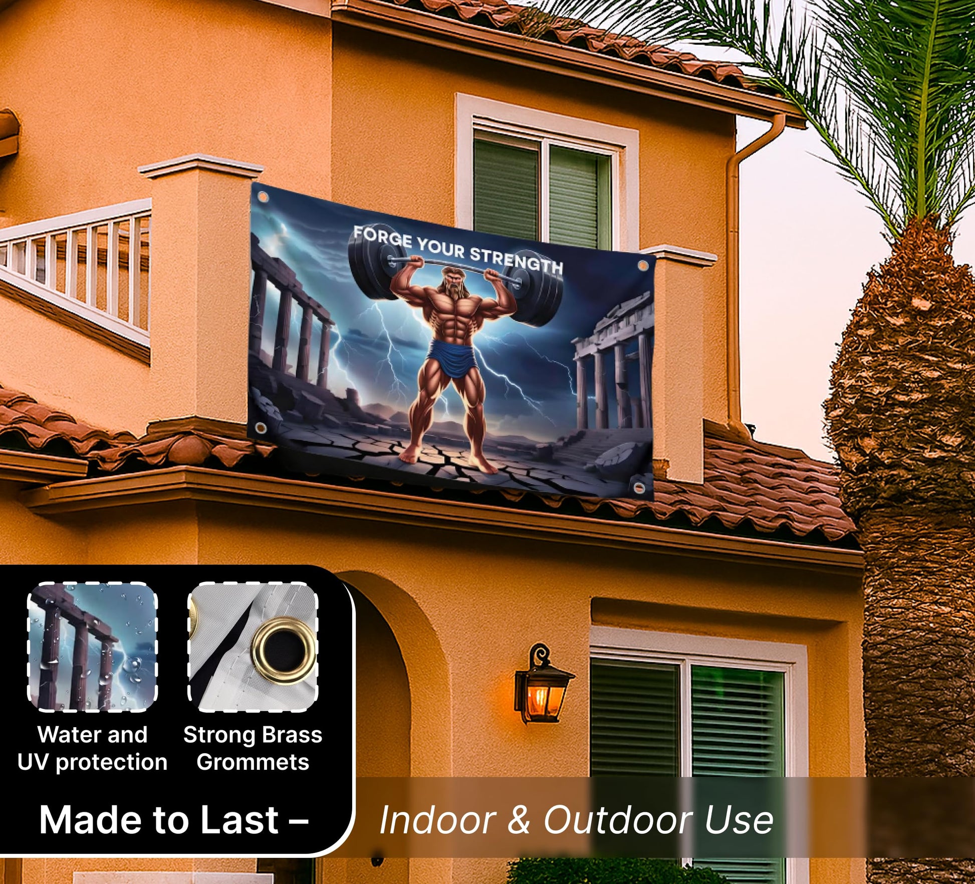 - Imported 100% polyester flag. Motivational flags for home, college, dorm, room, guys man, cave, bedroom and also wall poster for guys. Flags meme funny cool quoted "Forge Your Strength!".