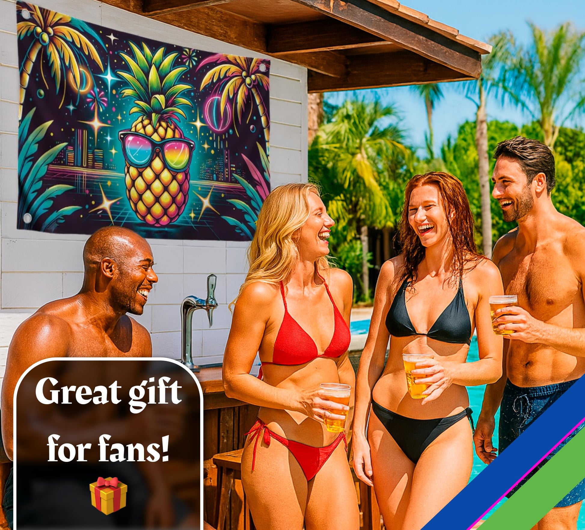 - Imported 100% polyester flags, 3x5 feet funny flag for college dorm decorations or bar decor. Cool pineapple posters for room guys, summer party banner for beach house and outdoor patio.