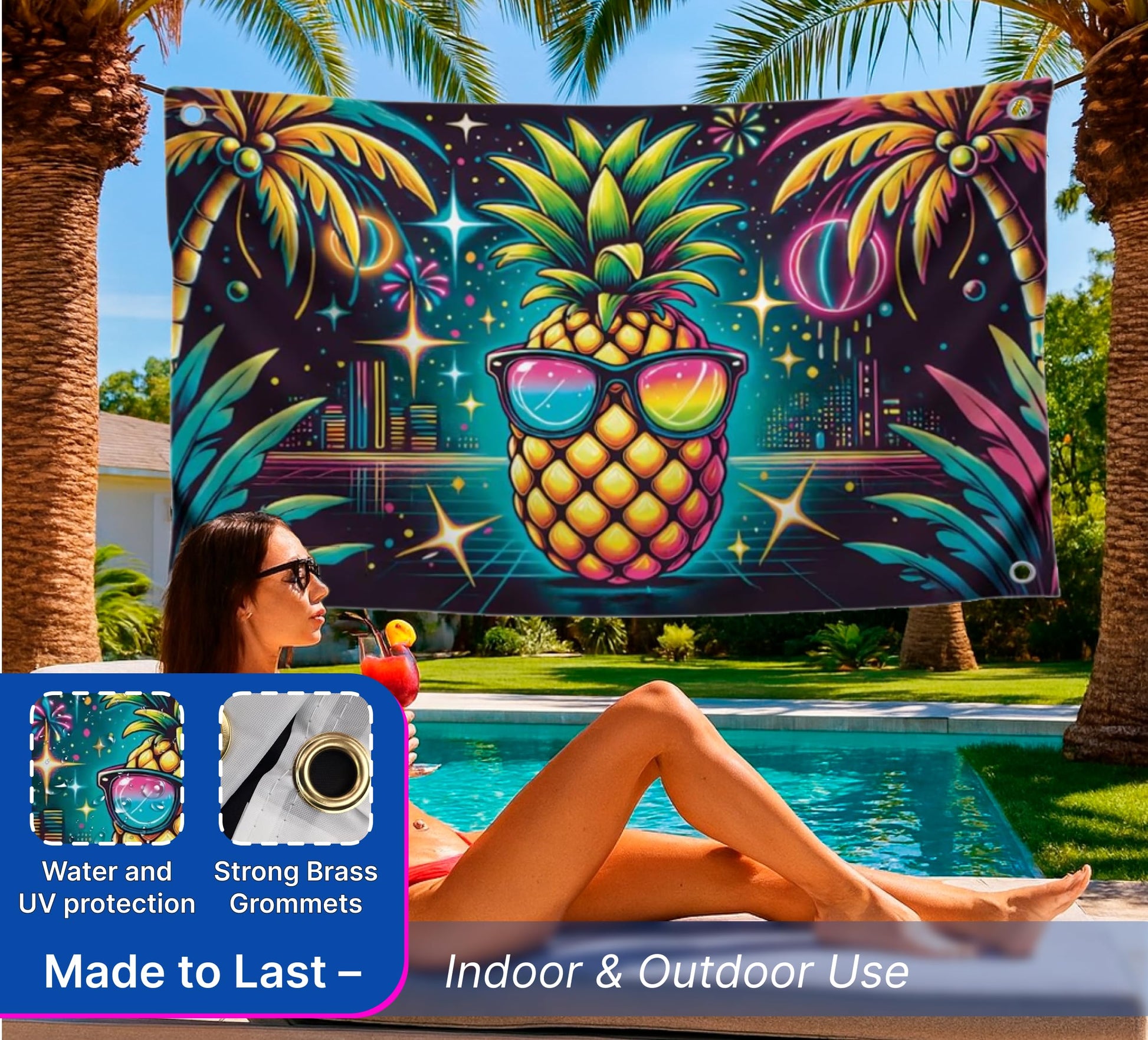 - Flags 3x5 outdoor decorative, perfect for room flags for teens or boys dorm room decor. Pineapple neon design adds tropical summer vibes to backyard, patio, or student college dorm room.