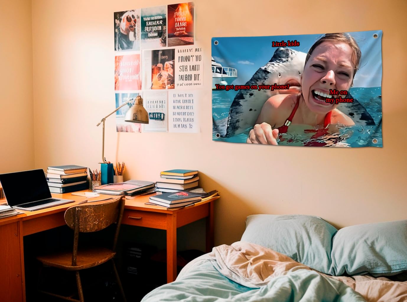 - Showcase your love for sea culture with this hilarious "You Got Games On Your Phone?" flag. It’s the ultimate wall accessory for game night, dorm rooms, or any space in need of a fun, nostalgic touch.