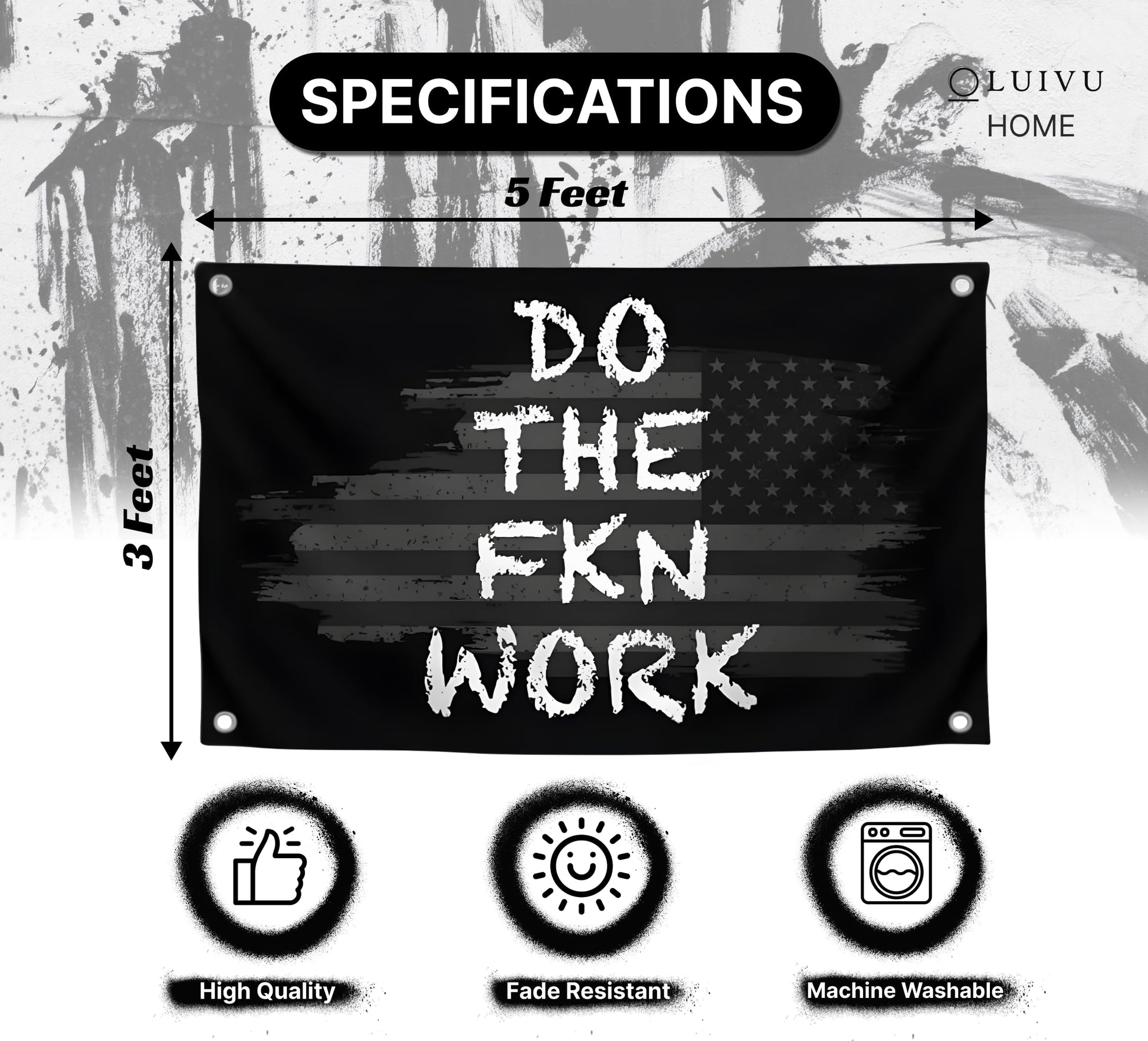 - Get motivated every day with the bold "Do The FKN Work" flag. This striking flag serves as a constant reminder to push through procrastination and focus on your goals, making it perfect for gyms.