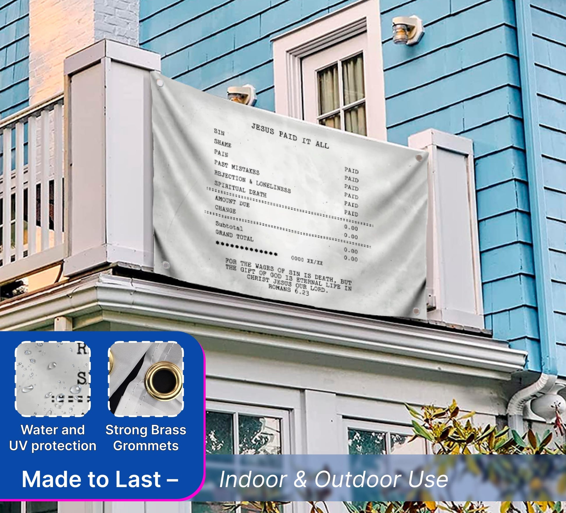 - Celebrate faith with the "Jesus Paid It All" flag! Featuring a meaningful design, this flag is a powerful reminder of the ultimate sacrifice. Perfect for display in your home, garden, or church.