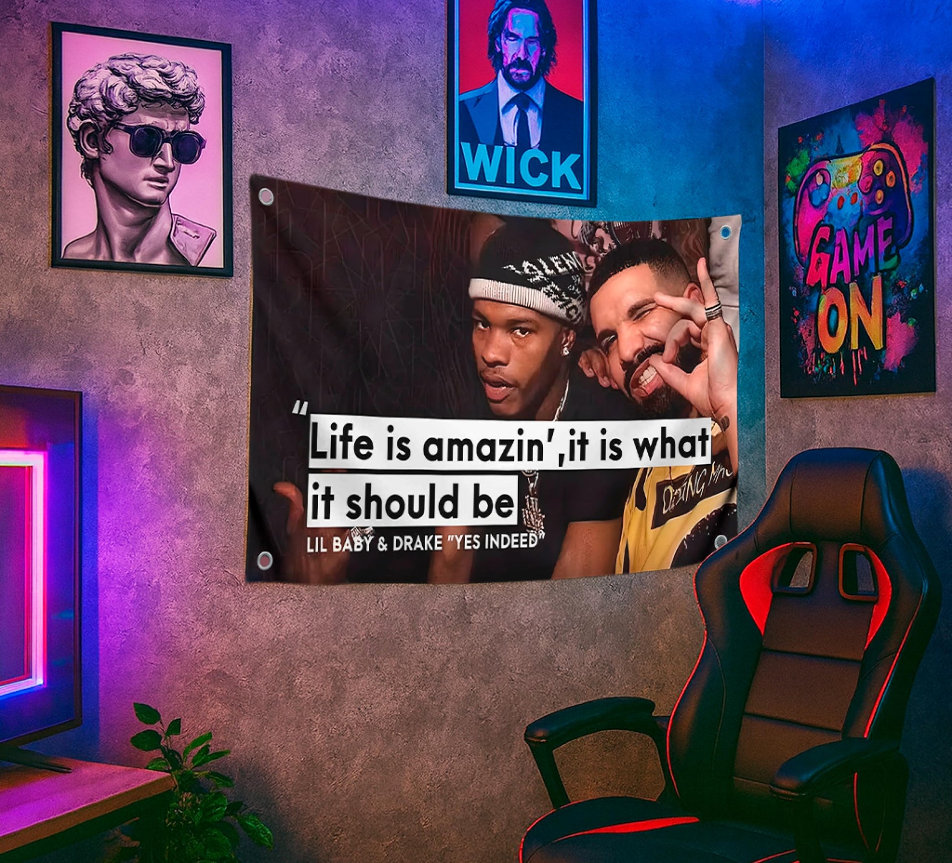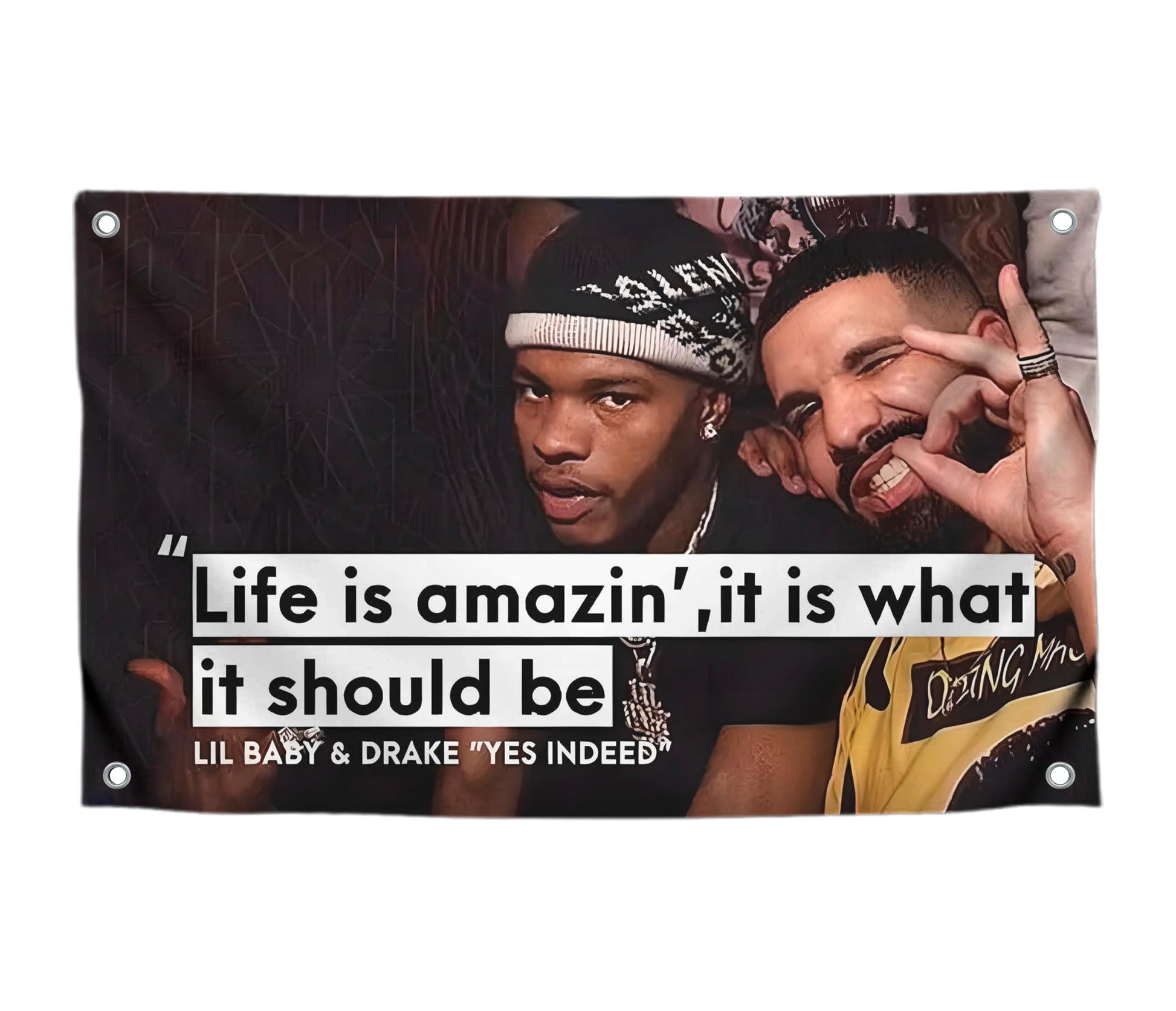 - Room flags: funny meme for guys, man cave poster, bedroom rapper music poster for a teenager's room on the wall. Flags make beautiful and entertaining room decor: college dorms, fraternities, bedrooms.