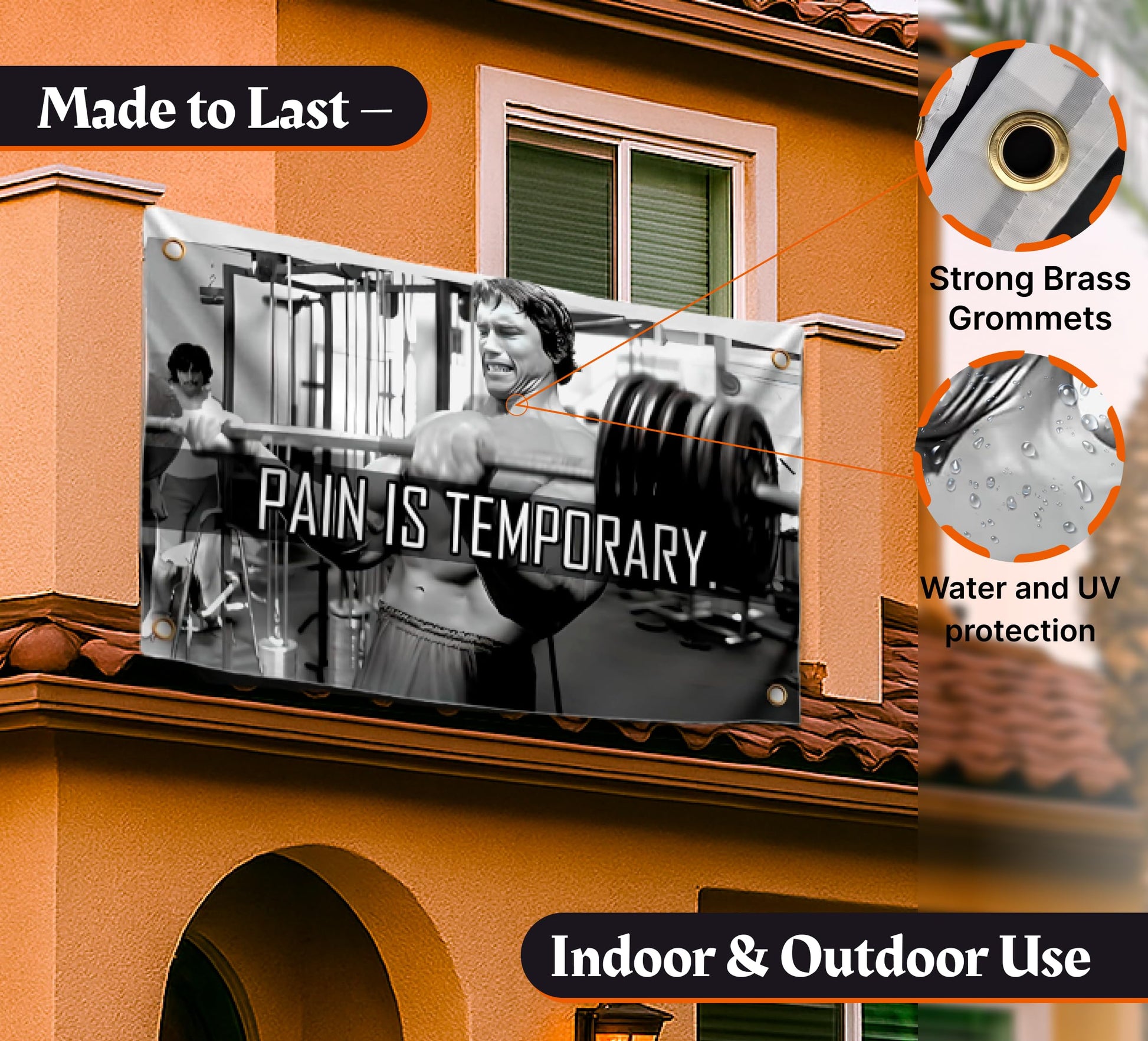 - Hang the "Pain is Temporary" motivational Flag anywhere for a daily dose of inspiration. Whether it's your home gym, dorm room, man cave, this flag serves as a reminder to always strive for greatnes.