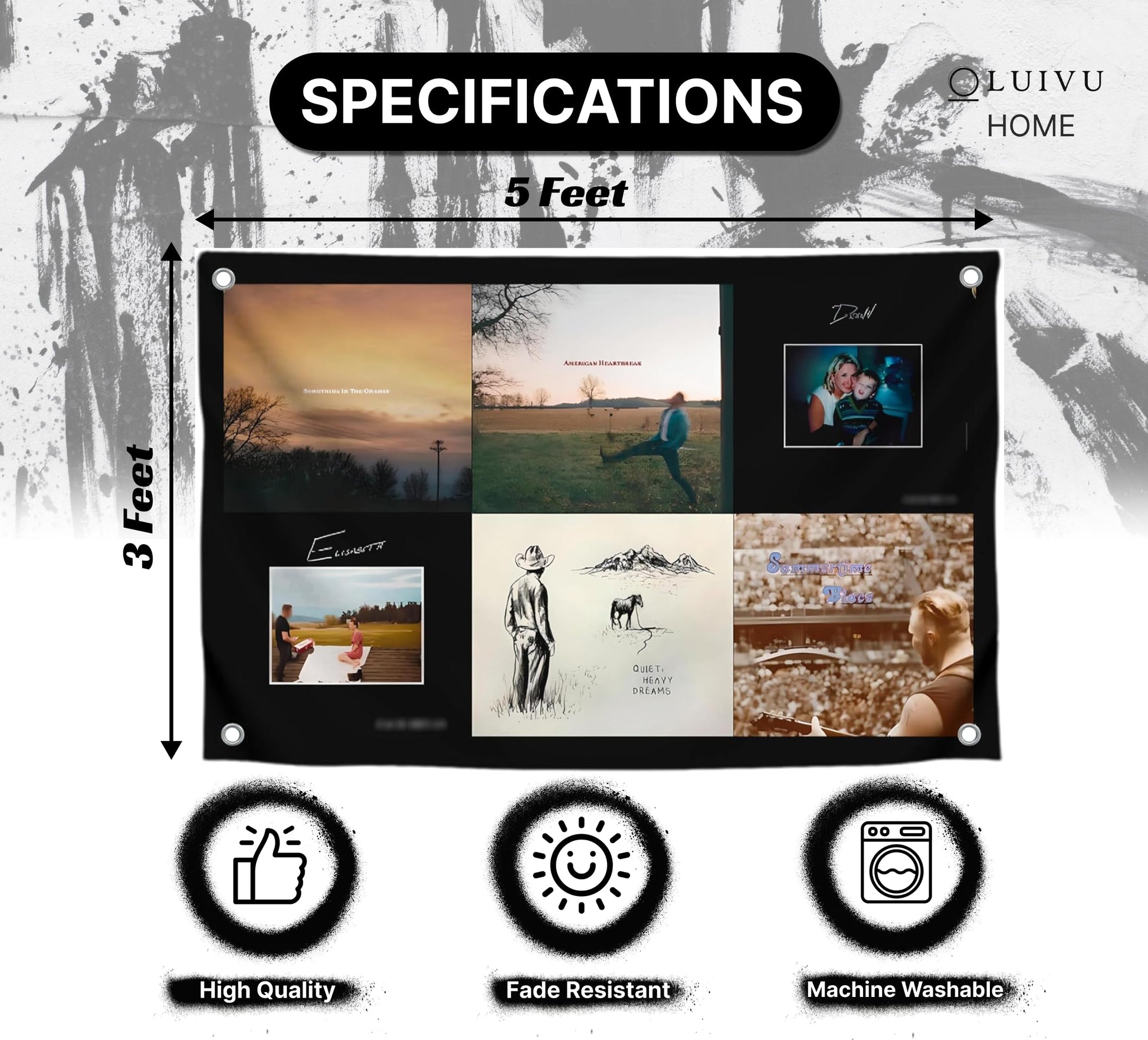 This country music album tapestry is great quality. Adds a nice look to a wall and is the perfect size!