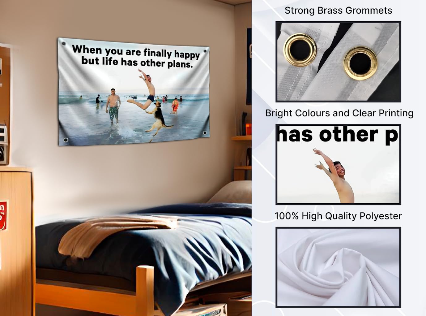 - Relatable humor, capture the of emotions with this flag featuring the quote "When You Are Finally Happy But Life Has Other Plans." A perfect addition for anyone who appreciates a dose of humor.