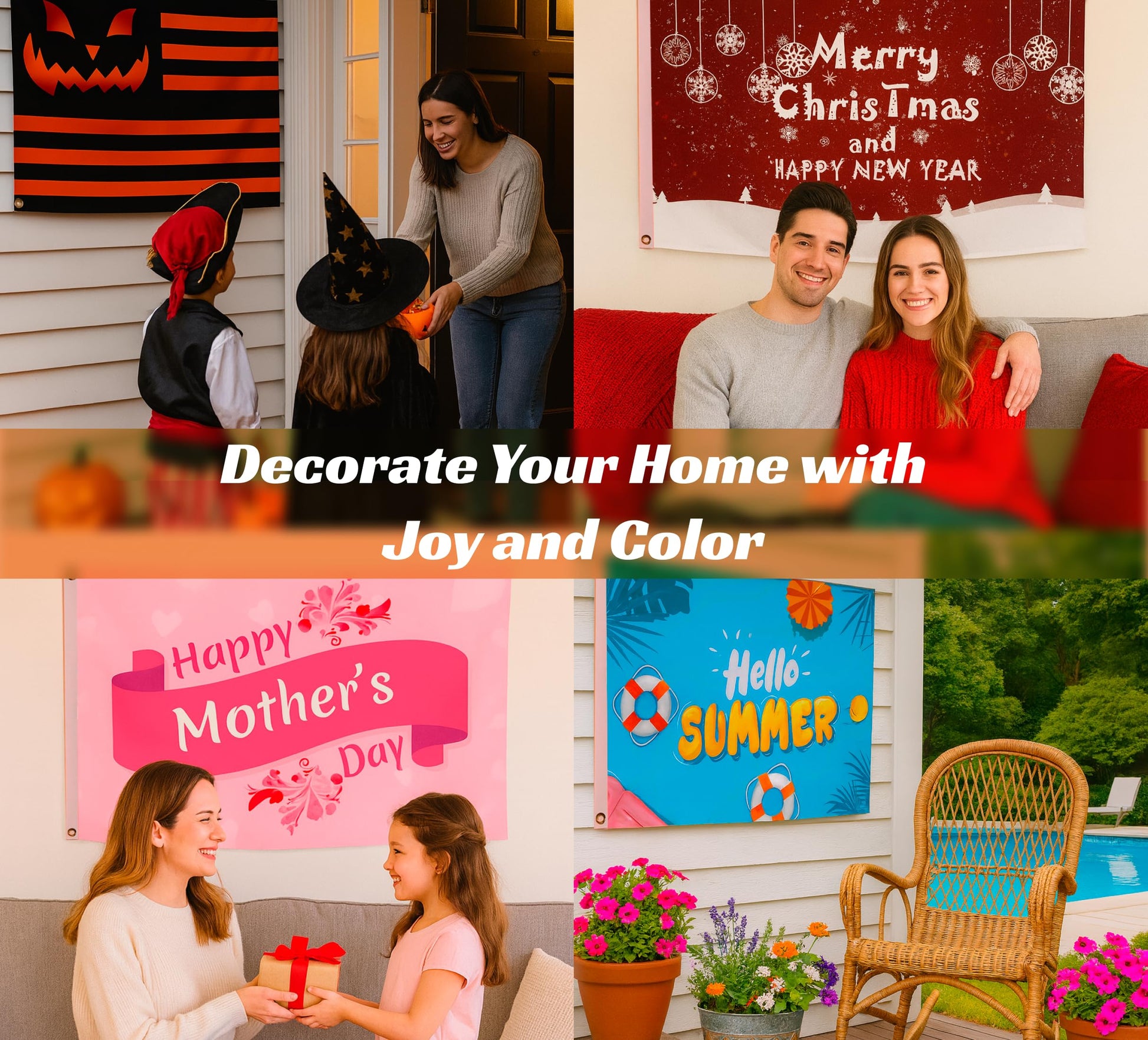 - Our set of seasonal flag to decorate your house or garden in all seasons. Flag is made polyester/nylon with 2 brass grommets. Decorative large holiday flags for yard or house, indoor or outdoor .