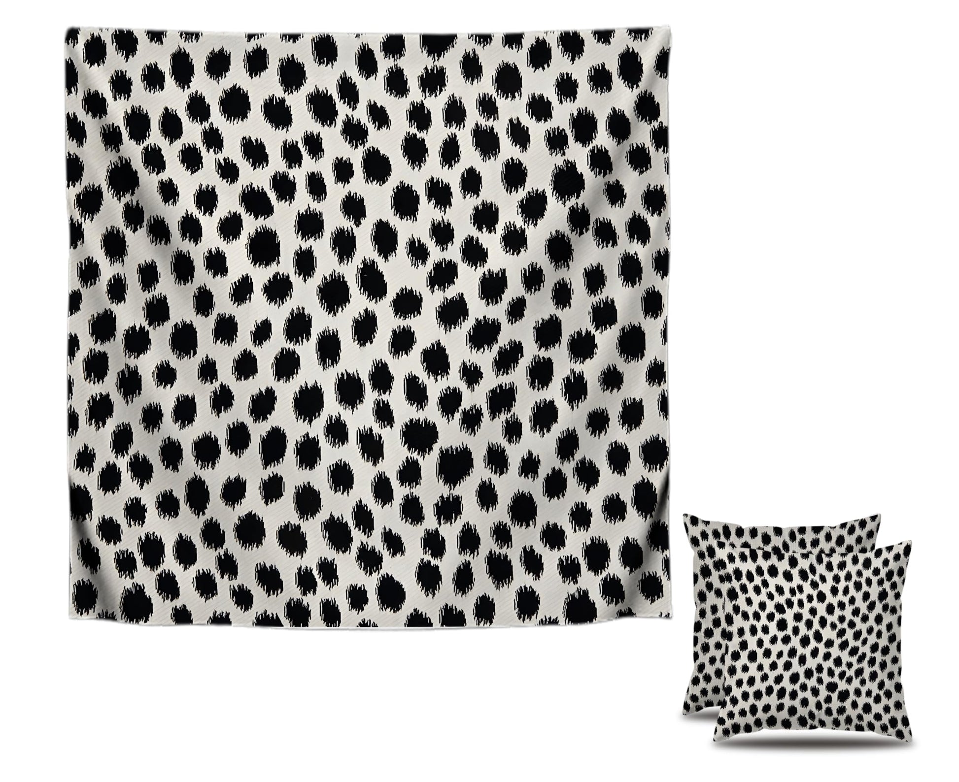 Set of 2 Decorative Throw Pillow Covers 18x18 Inches - Black and Cream Polka Dot Pillow Covers - Throw Pillows Boho Design Brush Strokes Decorative - Pillowcase Square Cushion Cover in Linen