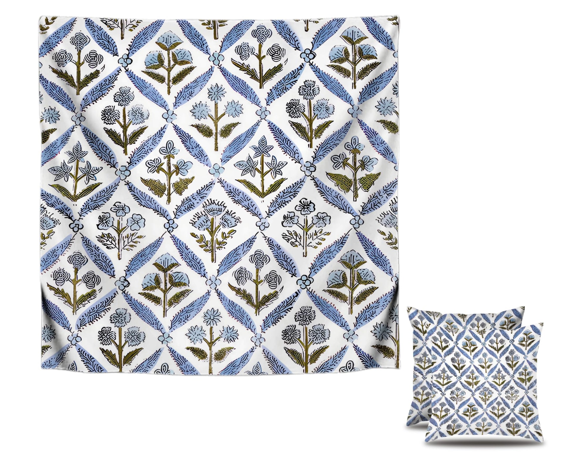 Set of 2 Decorative Throw Spring Pillow Covers 20x20 Inches - Light Steel Blue Block Print Throw Pillow Covers in Linen - Decorative Couch Pillows for Living Room - Chic Boho Cute Pillows Covers