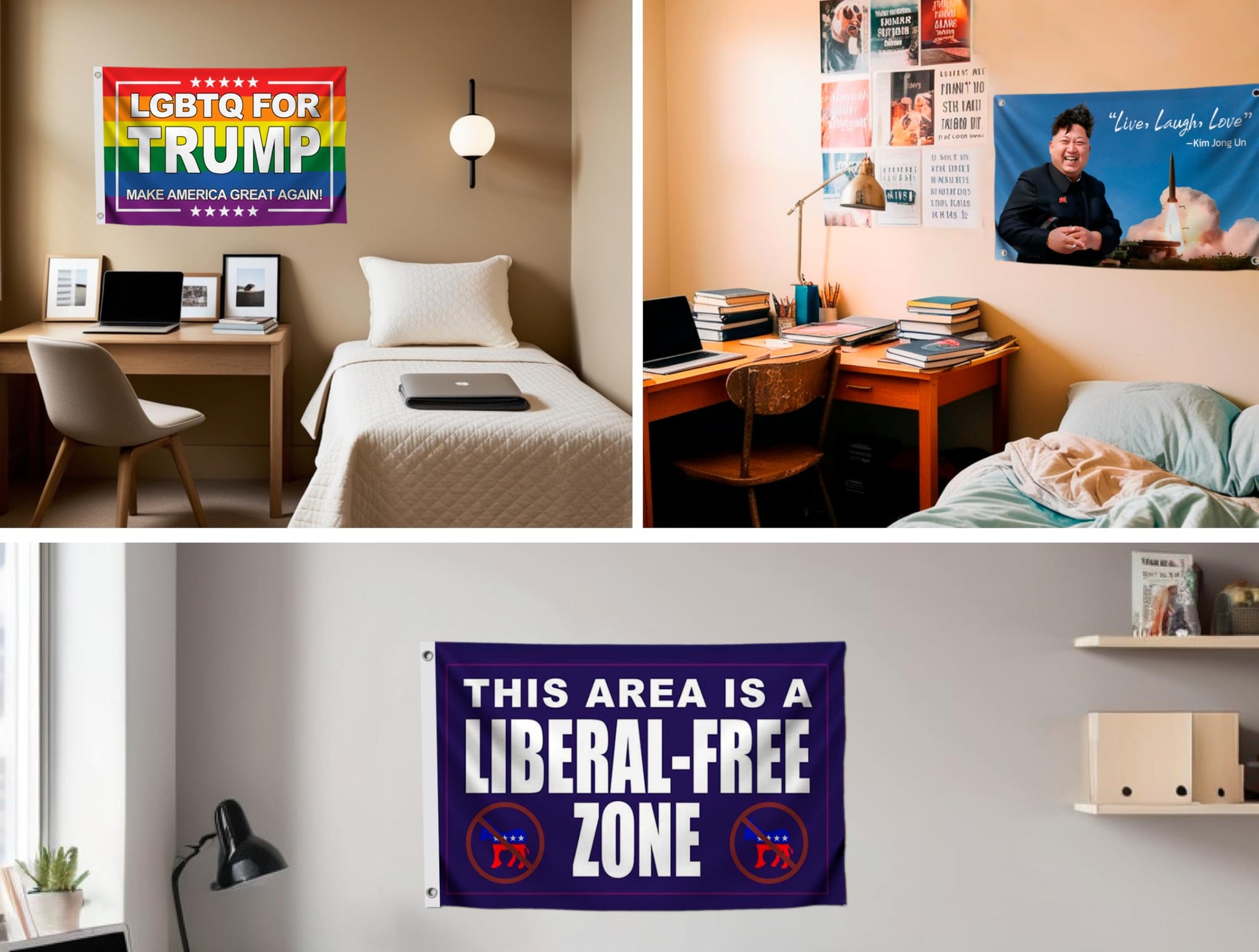 - This set of 3 different political flags includes: "This Area Is a Liberal Free Zone" , "Live Laugh Love" , "LGBTQ for Trump Mace America Great Afain!". Wall decorations for home or office.